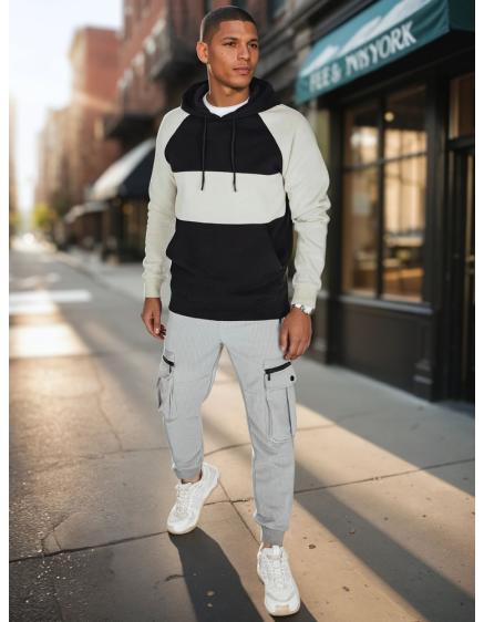 Pánská mikina basic s kapucí, bílo-černé pruhy