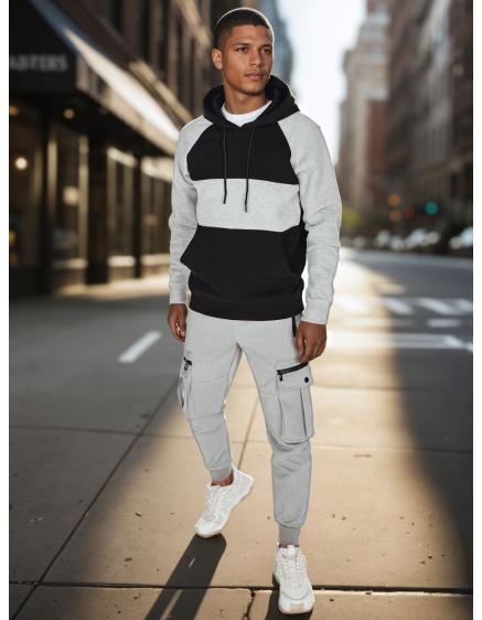 Pánská mikina basic s kapucí v šedých a černých pruzích