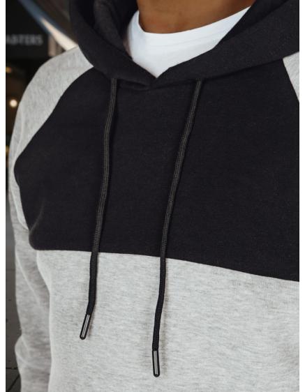 Pánská mikina basic s kapucí v popelavě černých pruzích
