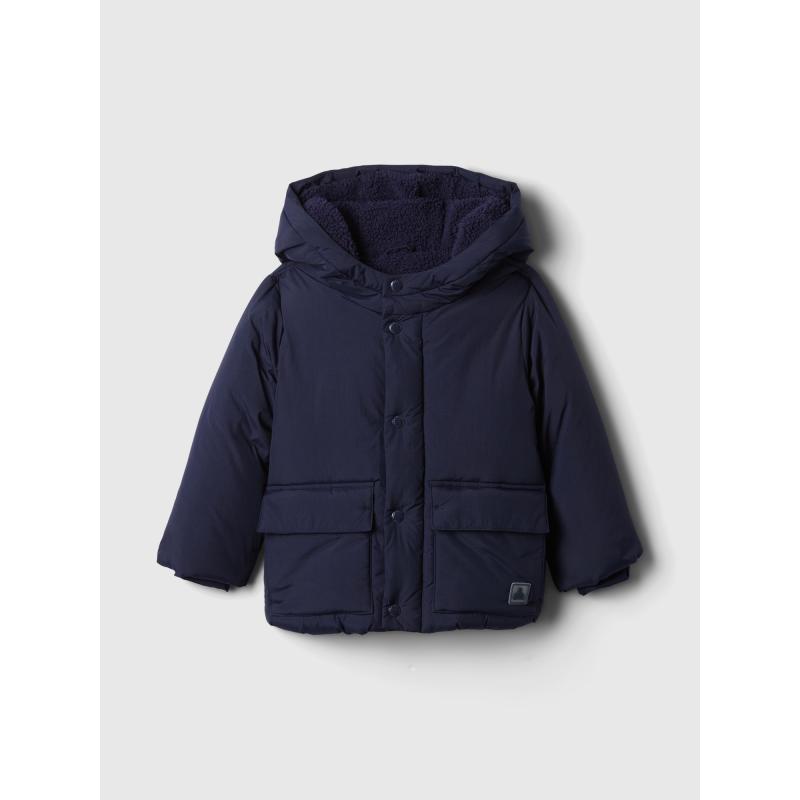 Hladká středně těžká voděodolná prošívaná bunda s hřejivou sherpa podšívkou.Klasický límec.Dlouhé rukávy s žebrovanými manžetami.Zapínání na druky s ukrytým zipem pro čistý a bezpečný vzhled.Přední kapsy pro uložení drobností.Sherpa podšívka poskytuje teplo a pohodlí.Vnější vrstva bundy je vyrobena ze 100% recyklovaného nylonu, což snižuje spotřebu zdrojů a produkci odpadu.Vyrobena s 100% PrimaLoft® P.U.R.E.™ výplní, která při výrobě produkuje o 50 % méně emisí uhlíku oproti běžným metodám.Rovný, pohodlný střih.Bunda končí na úrovni boků. 100 % recyklovaný nylon
