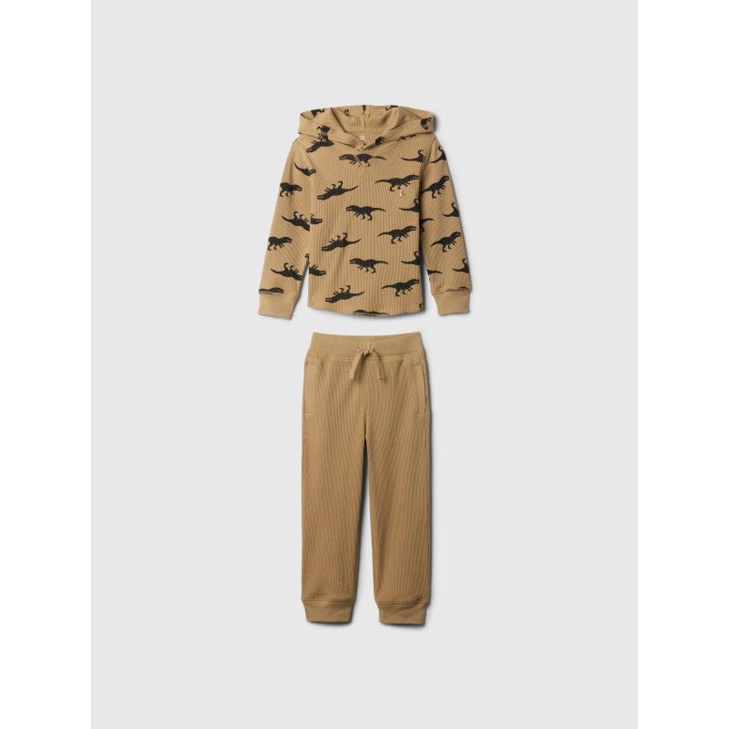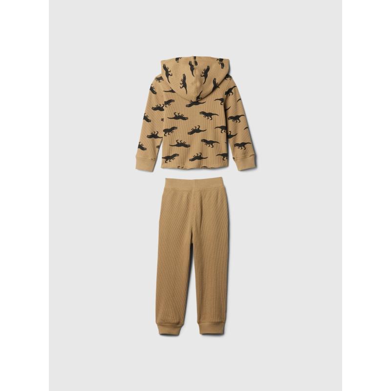 Měkký termo set mikiny kapucí a kalhotami.Vyrobený z jemného a hřejivého bavlněného materiálu pro maximální pohodlí.Dlouhé rukávy s manžetami.Roztomilý dinosauří potisk na mikině.Elastický pas pro snadné oblékání.Rovný střih.Ideální pro chladnější dny, poskytuje teplo a pohodlí. 100 % bavlna