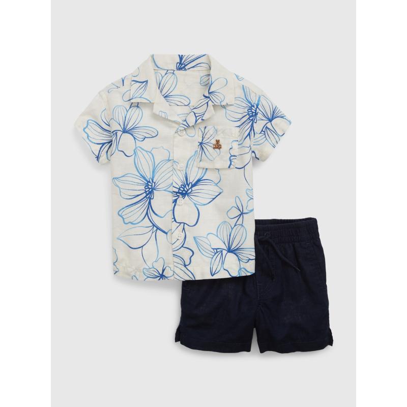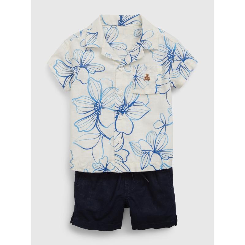 Dětský lněný outfit.Květovaná košile s krátkým rukávem.Rozhalenka a kapsička s výšivkou.Jednobarevné kraťasy.Pružný pas a kapsy.Seznamte se s roztomilým méďou Brannan, který je maskotem Gap již více než 20 let. Drobnou značkou medvídka je označeno pouze nejhebčí a nejměkčí dětské oblečení. Vyzkoušejte měkkost a hebkost vybraných materiálů a dopřejte svému děťátku pohodlí po celý den. Medvídek Brannan je tu pro vás.Více z kolekce Brannan Bear > . 100 % bavlna