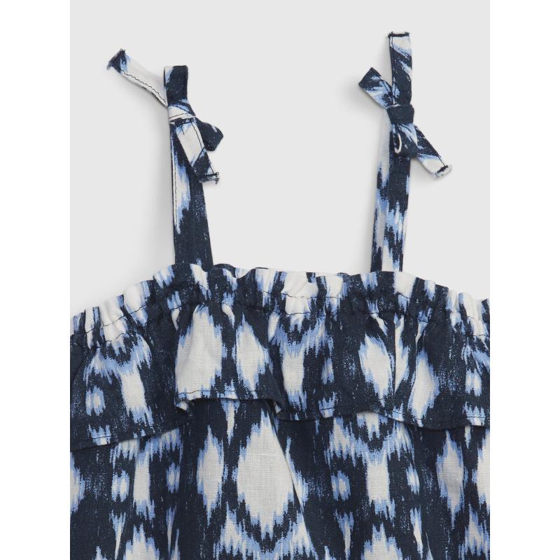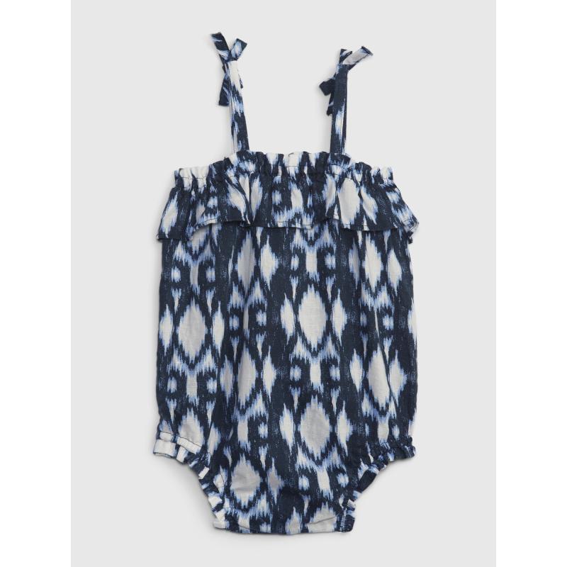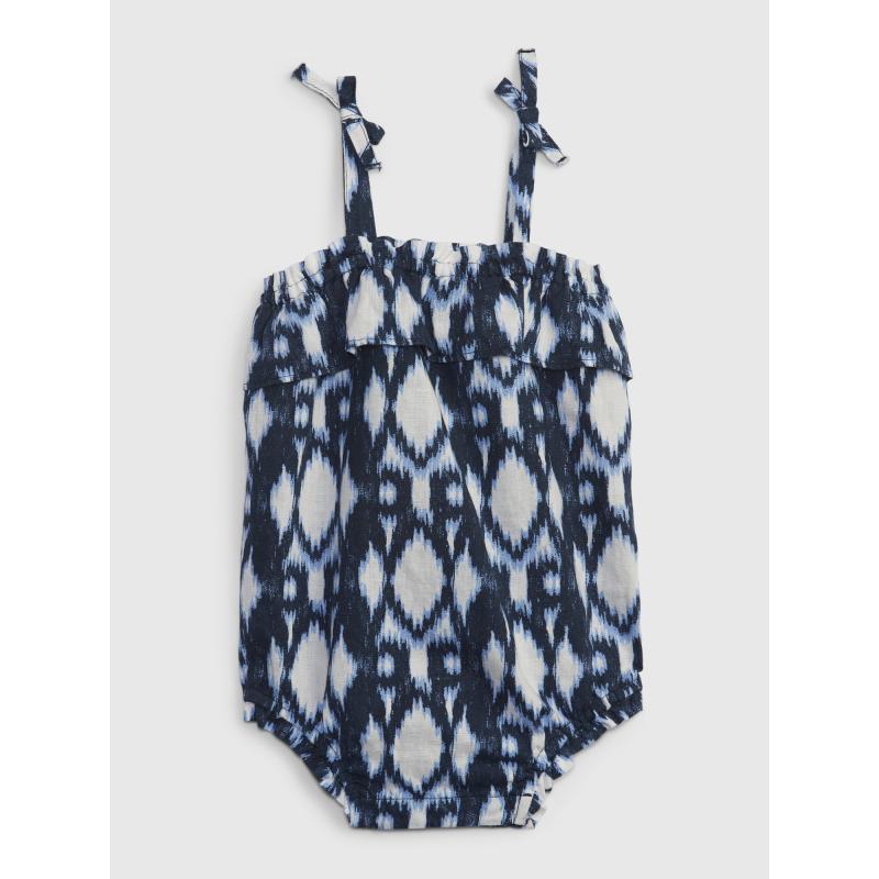 Dětské vzorované body.Úzká ramínka a volánek.Pružné nohavičky.Výrazný vzor.Směs lnu a bavlny. 55 % len, 45 % bavlna