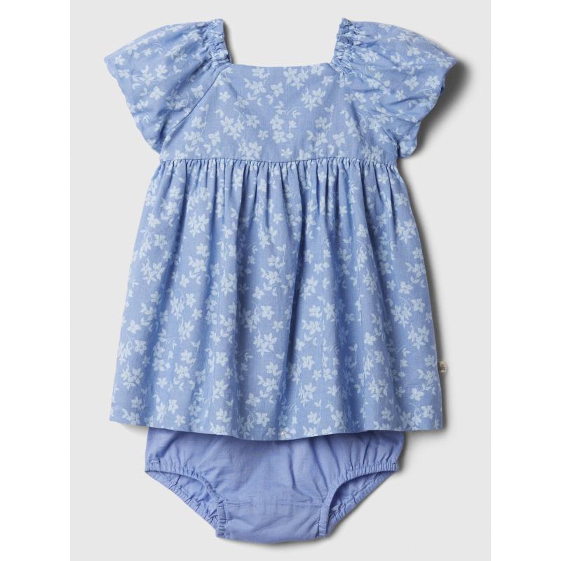 Dětské šaty a kalhotky.Hranatý výstřih.Krátké rukávy a našitá sukýnka.Kalhotky přes plenky.Materiál len a bavlna.Seznamte se s roztomilým méďou Brannan, který je maskotem Gap již více než 20 let. Drobnou značkou medvídka je označeno pouze nejhebčí a nejměkčí dětské oblečení. Vyzkoušejte měkkost a hebkost vybraných materiálů a dopřejte svému děťátku pohodlí po celý den. Medvídek Brannan je tu pro vás.Více z kolekce Brannan Bear > . 55 % len, 45 % bavlna