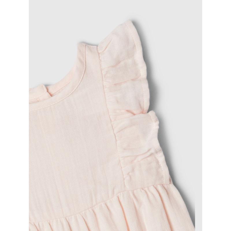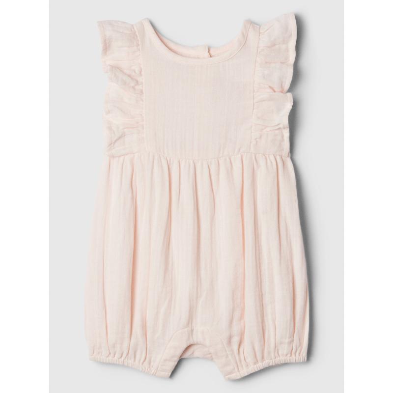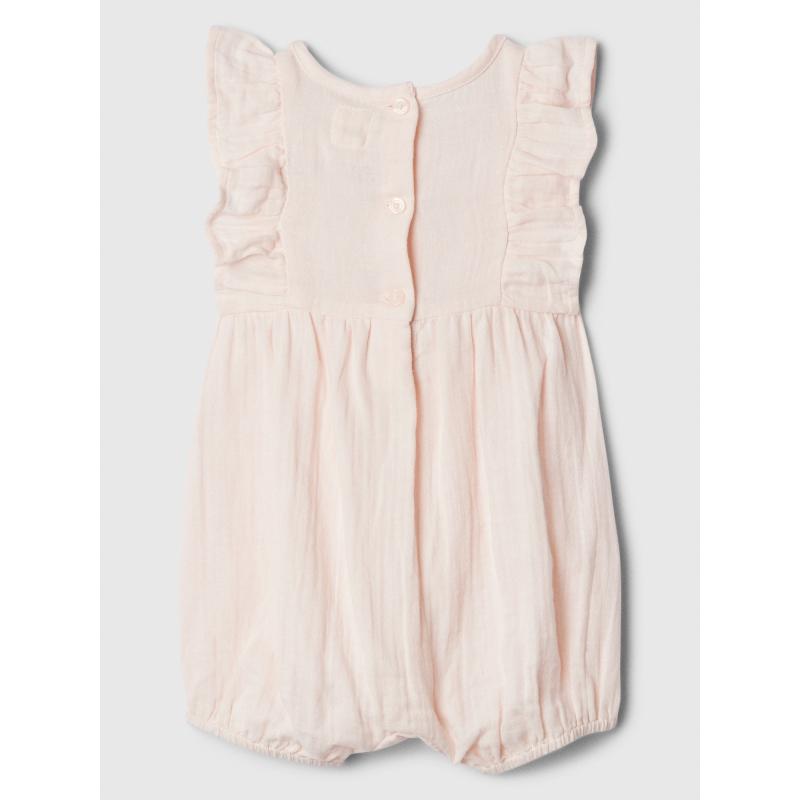 Dětský bavlněný overal.Kulatý výstřih se zapínáním za krkem.Krátké volánkové rukávy.Krátké nohavice. 100 % bavlna