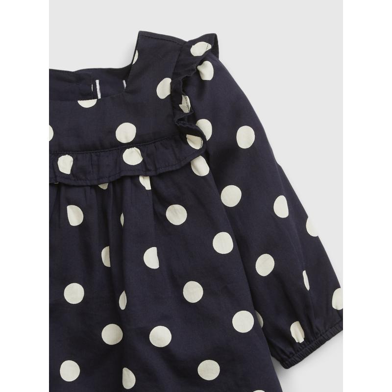 Dětské puntíkované šaty.Kulatý výstřih a zapínání na knoflíčky.Dlouhé rukávy a střih do A.Kalhotky přes plenky. 100 % bavlna