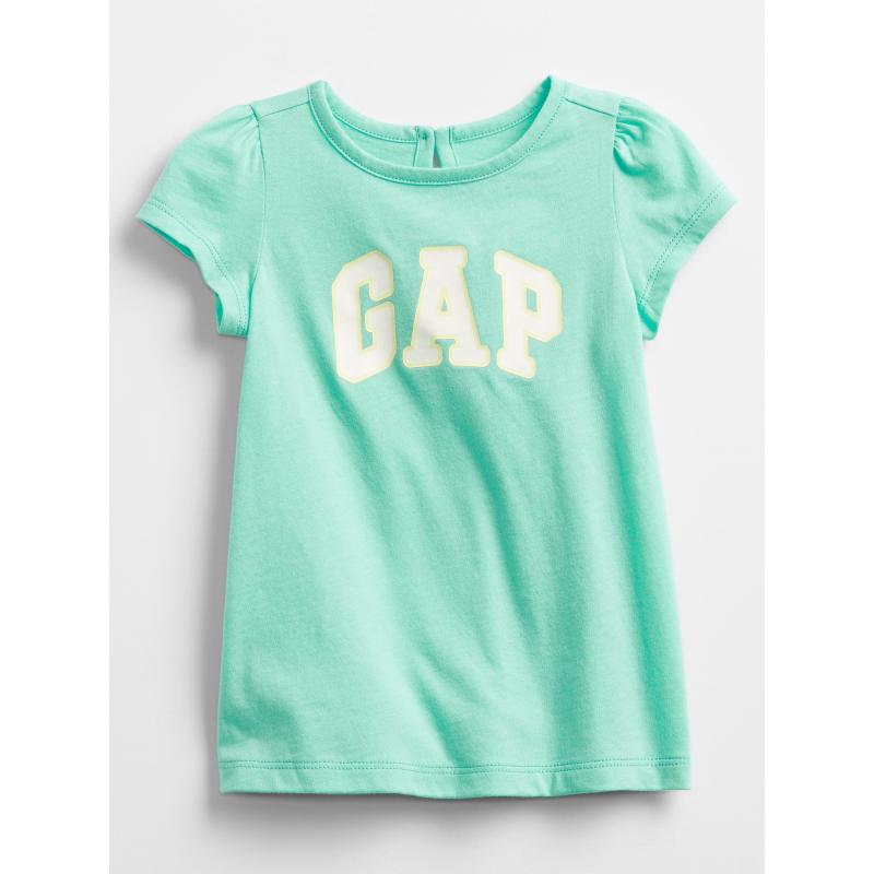 Dívčí šaty s krátkým rukávem a logem Gap na předním dílu100% bavlněné tričko v zelené barvě. 100 % bavlna