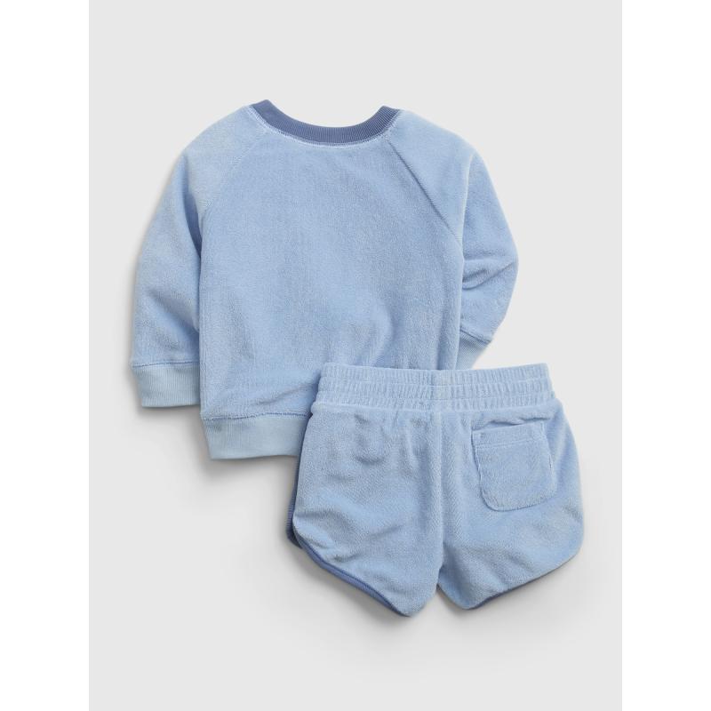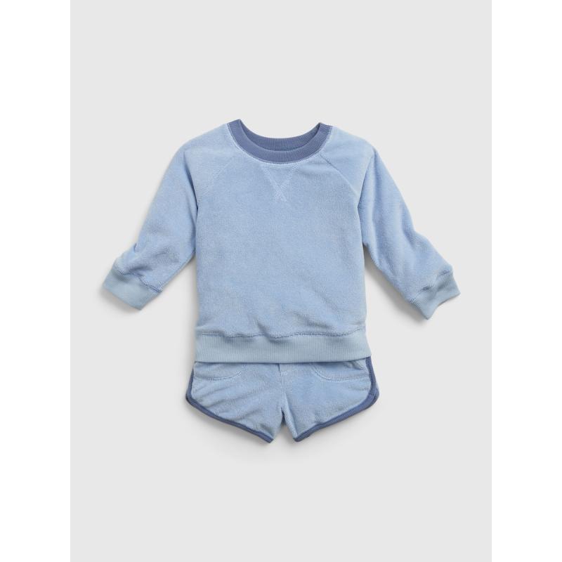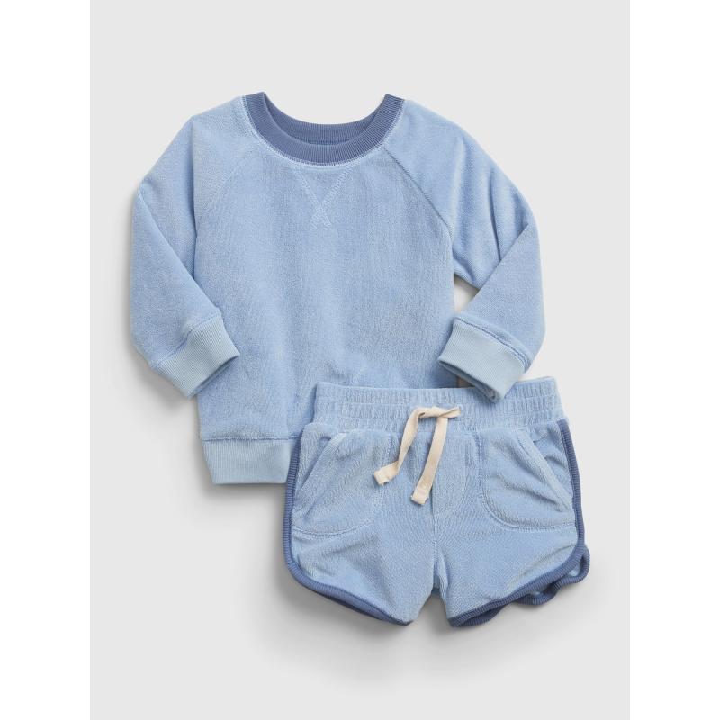 Chlapecký set ve světle modré barvě.Detailní tmavě modré lemování.Tričko s dlouhým rukávem.Kraťasy s pohodlným pružným pasem.Stahovací šňůrka pro lepší přizpůsobení.Měkký a příjemný materiál. 84 % bavlna, 16 % polyester