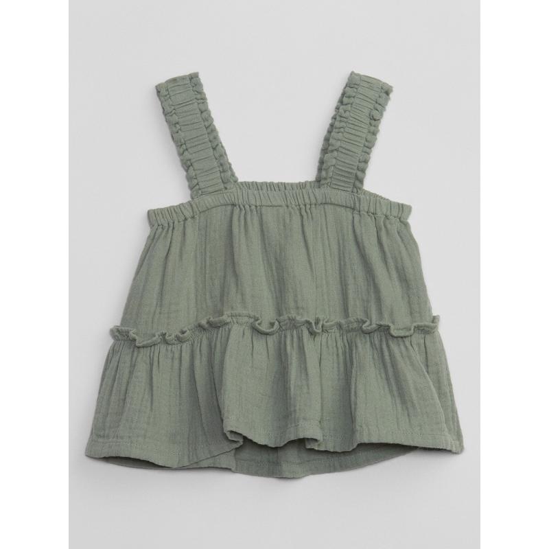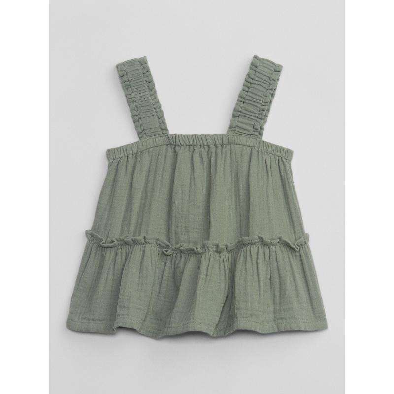 Dětský jednobarevný top.Mačkaný mušelín.Široká ramínka.Nabíraný volán.Střih do A. 100 % bavlna