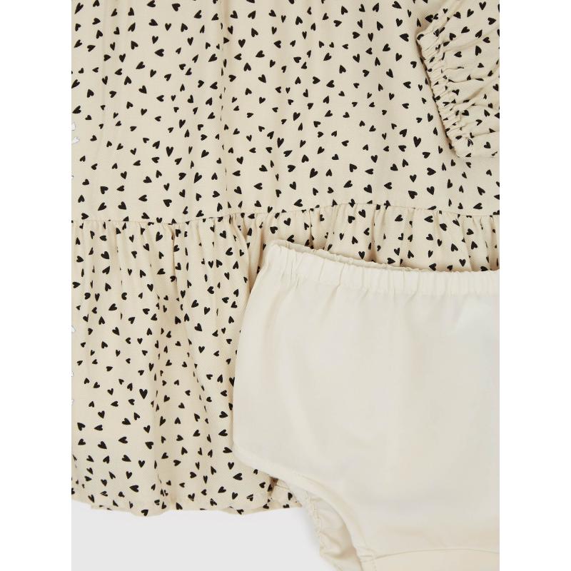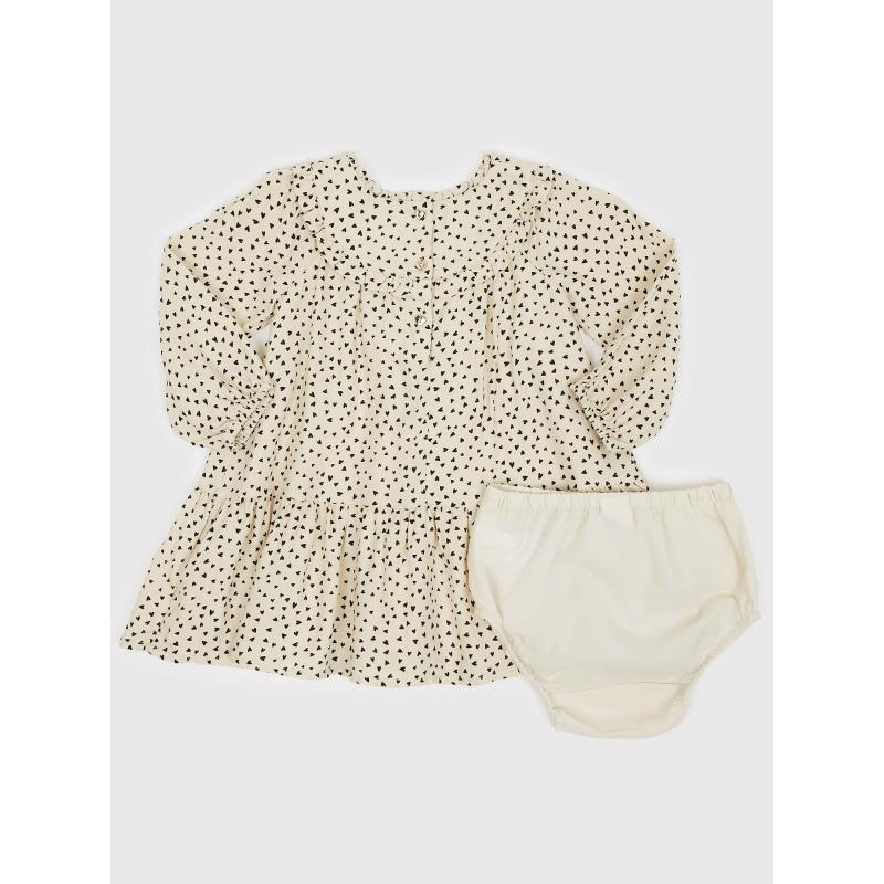 Dětské šaty s volánky.Součástí balení kalhotky na plenky.Kulatý výstřih se zapínáním za krkem.Drobný plošný vzor.Příjemný materiál. 70 % viskóza, 30 % Tencel Lyocell