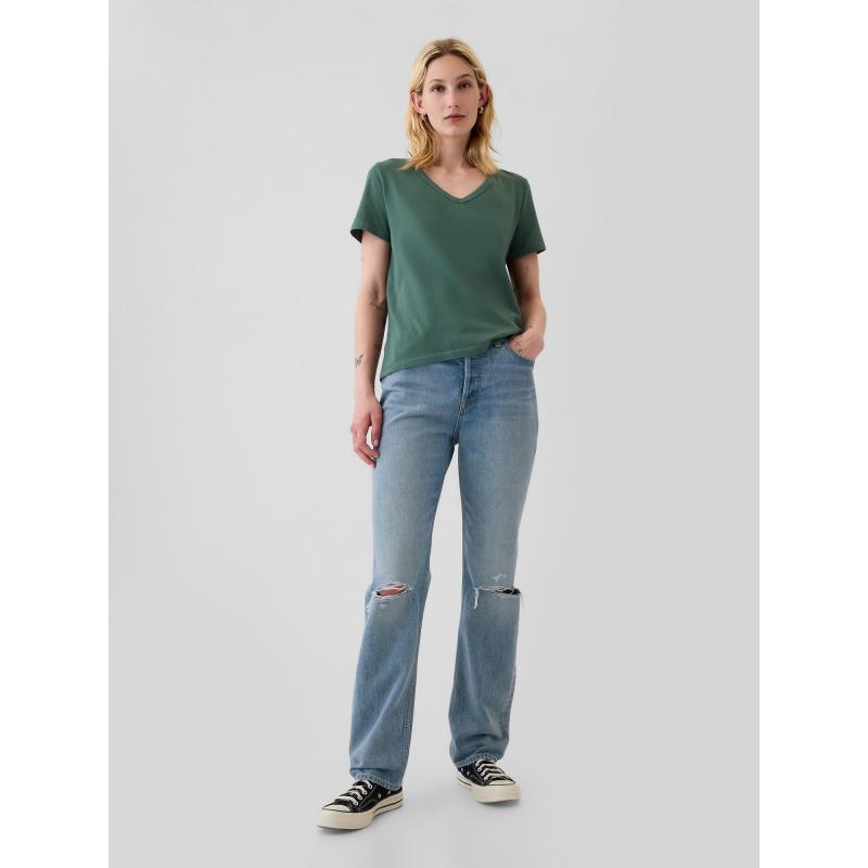 Dámské bavlněné basic tričko.Výstřih ve tvaru V.Krátké rukávy.Rovný uvolněný střih.Délka do boků.Vyrobeno ze 100% organicky pěstované bavlny.Modelka měří 177 cm a má 79 cm přes prsa, 61 cm v pase a 89 cm přes boky, nosí běžnou velikost S od značky Gap. materiál text cz