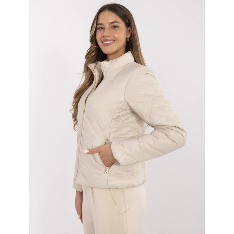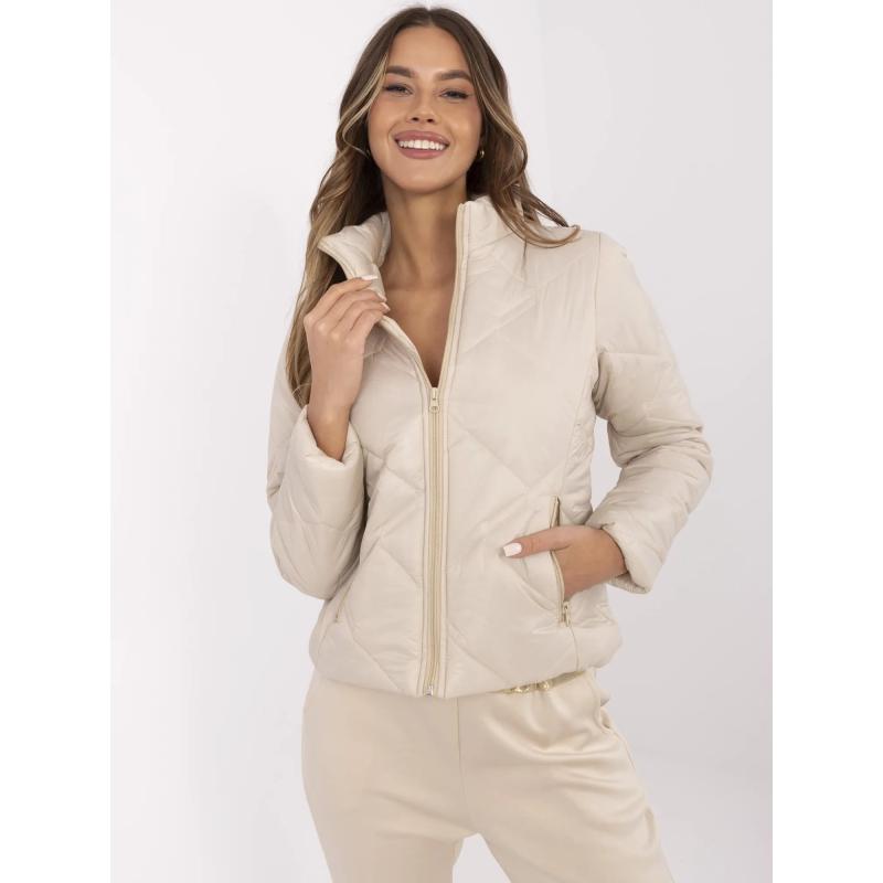 Bežová dámská bunda bez kapuce