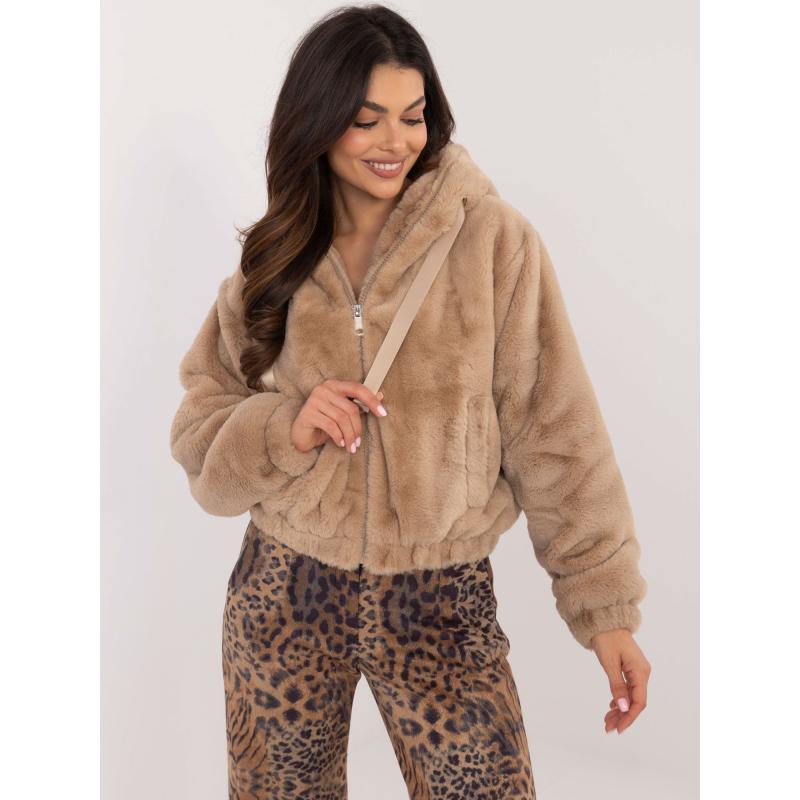 Béžová krátká bunda z umělé kožešiny z viskózy