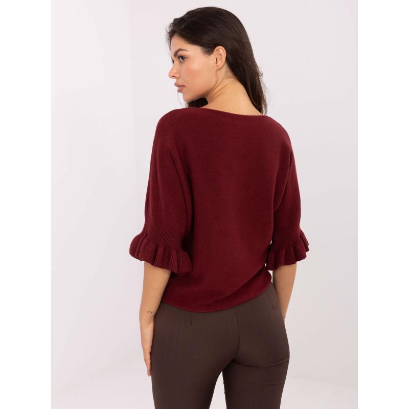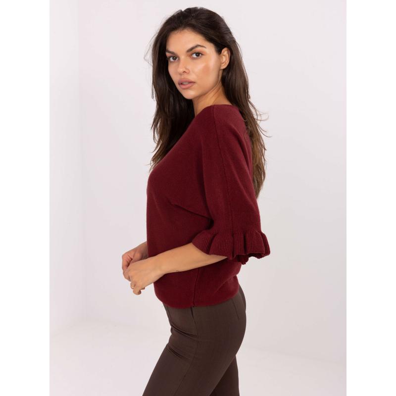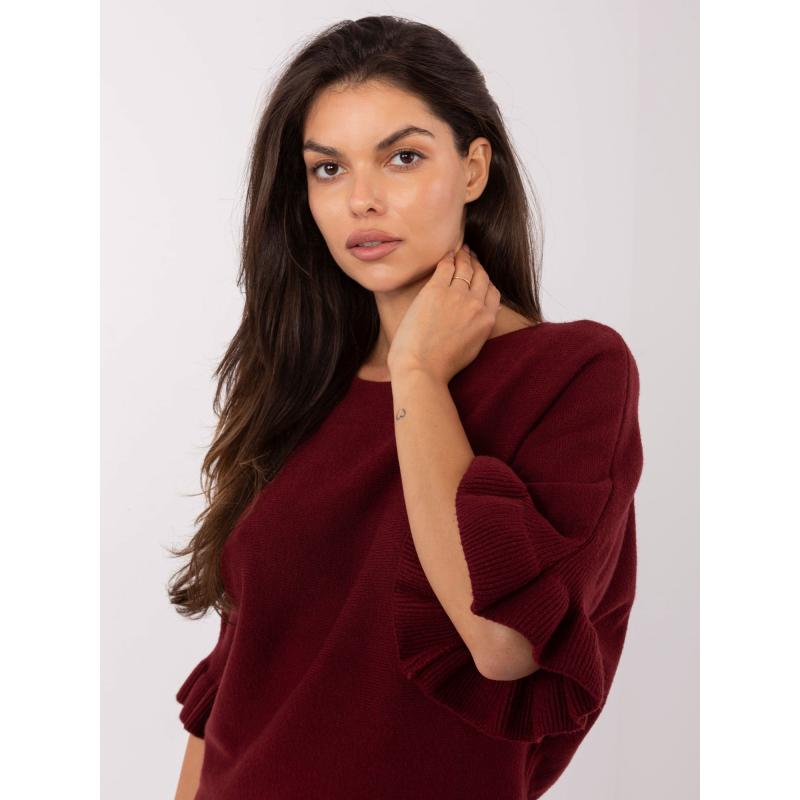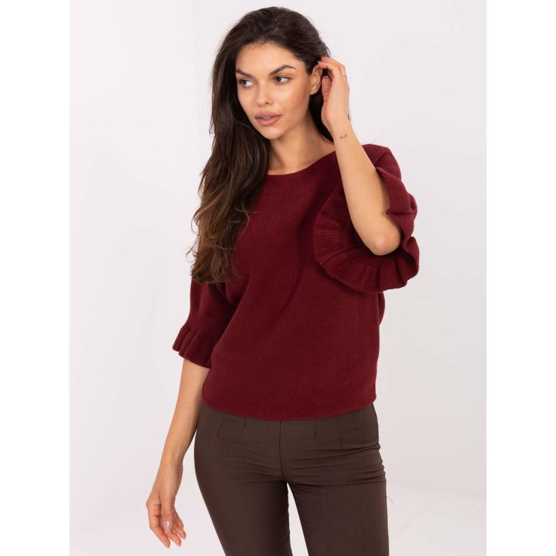 Bordový svetr s volánky na rukávech