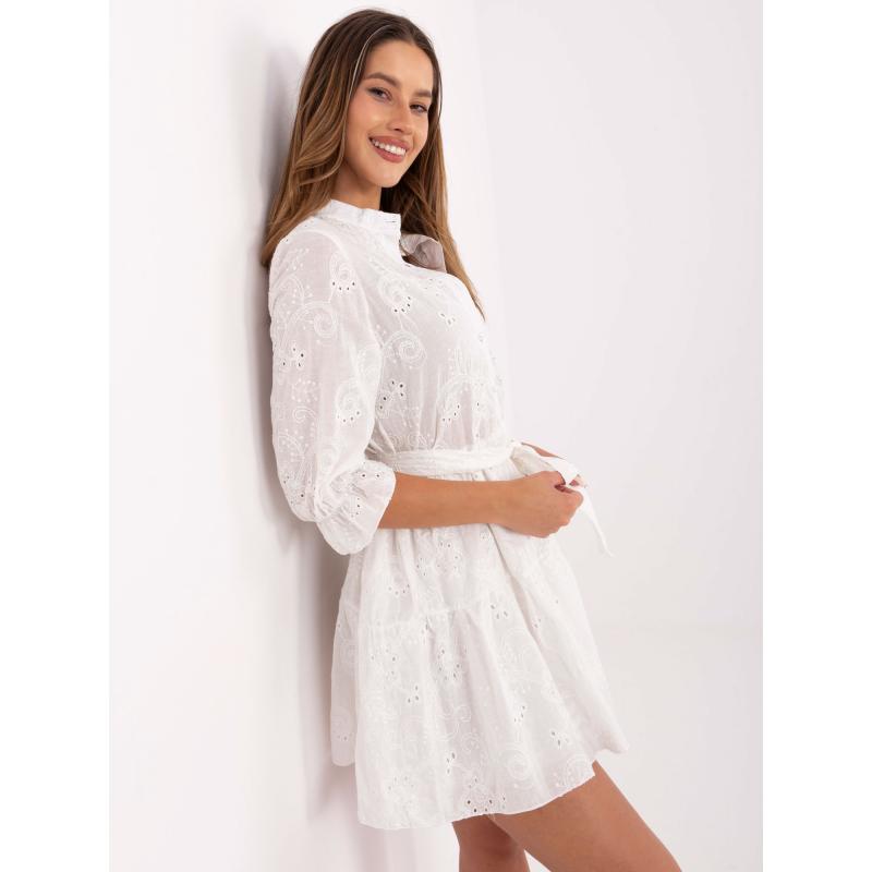 Dámské šaty s 3/4 rukávy rozšířené koktejlové bílé