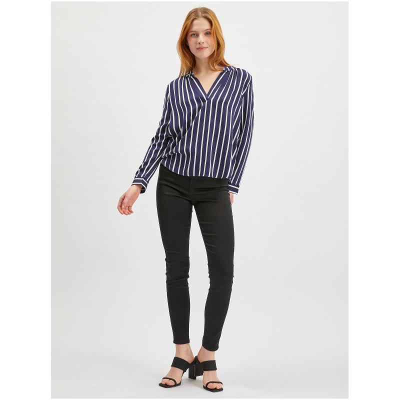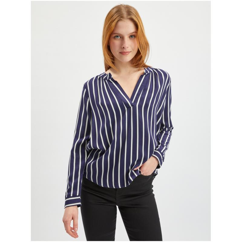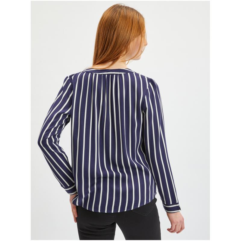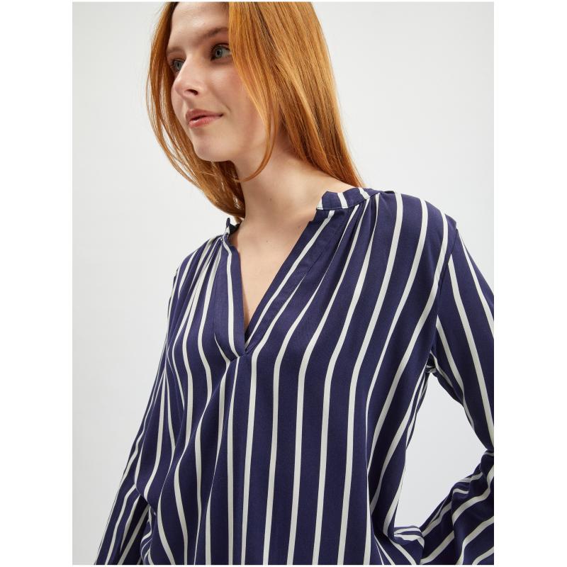 Barva: tmavě modráStřih: regular fitDélka rukávu: dlouhýVýstřih: véčkovýVzor: pruhovanýMateriál: 100 % viskózaKód produktu: 619142-575000
