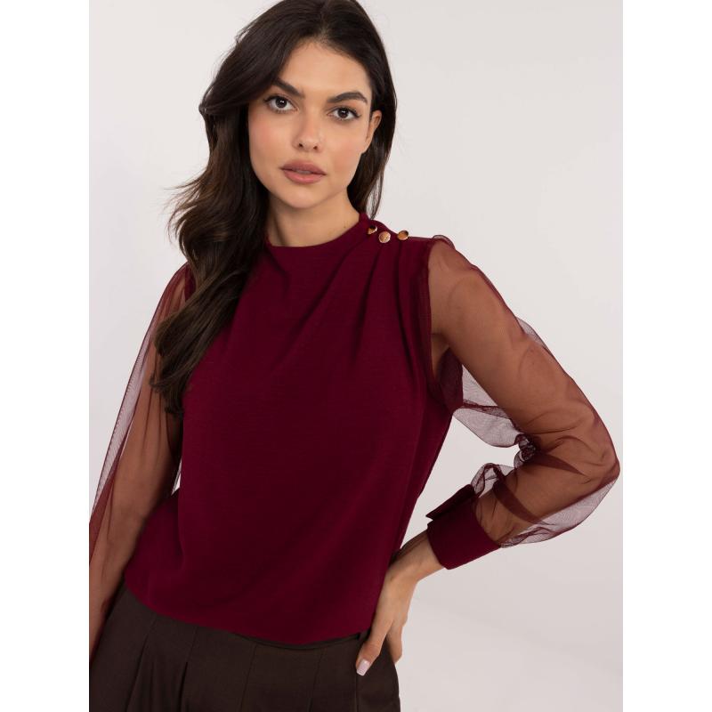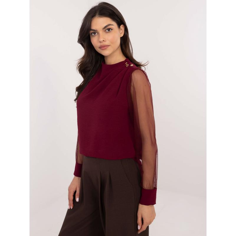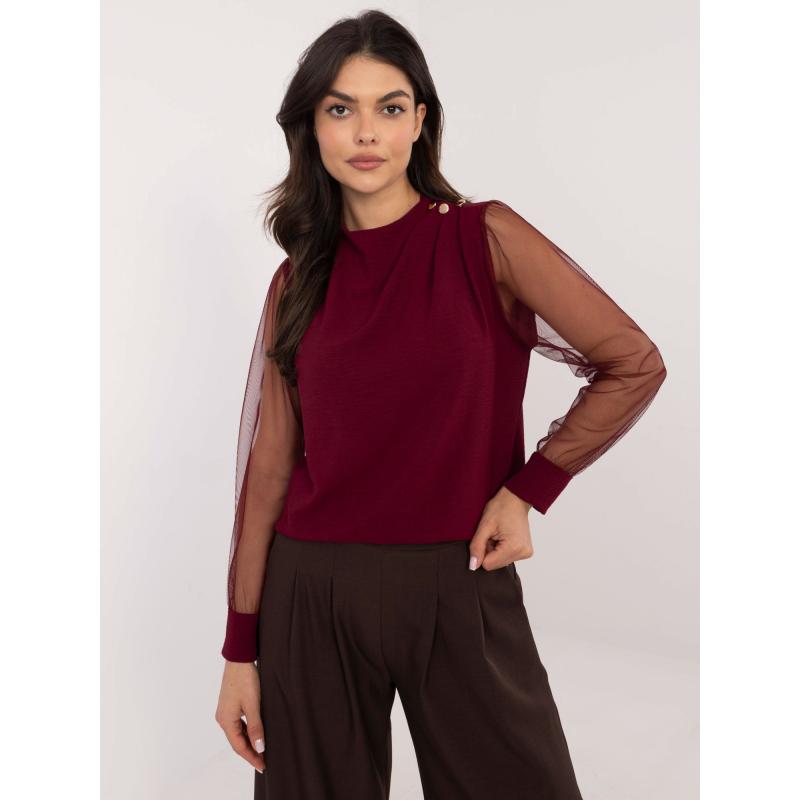 Bordeaux-i formális blúz hálós ujjakkal
