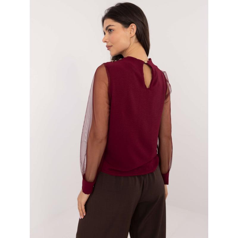 Bordová spoločenská blúzka so sieťovanými rukávmi
