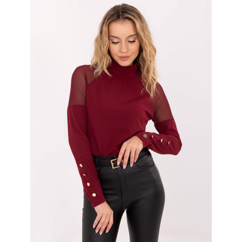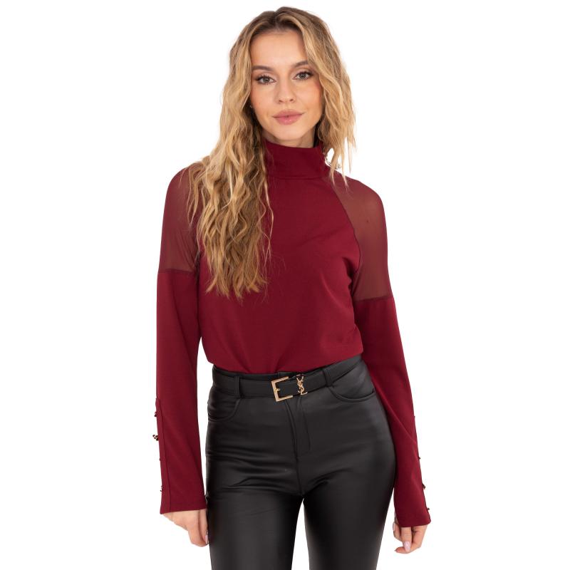 Bordová blůza s síťovanými vsadkami RUE PARIS