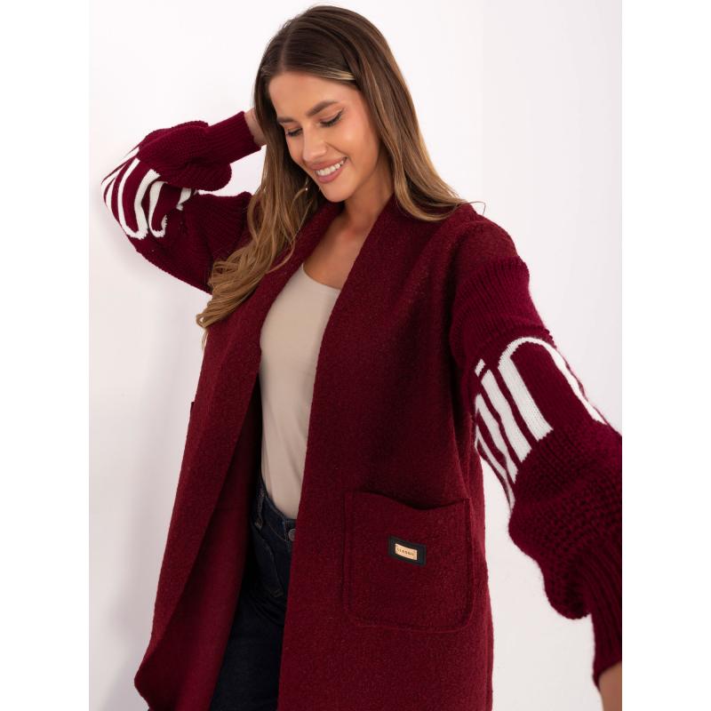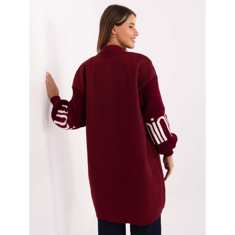 Chcete doručiť tovar na Slovensko? Prezrite si Burgundský dámsky kardigán s nápisom na rukávoch.. Magyarországra történő kiszállításért tekintse meg ezt a termékoldalt: Bordó női kardigán felirattal az ujjakon..
