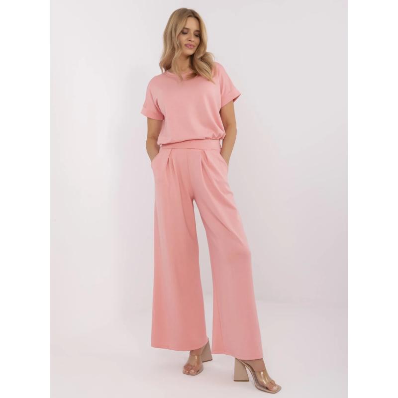 Broskvové teplákové kalhoty basic se záložkami