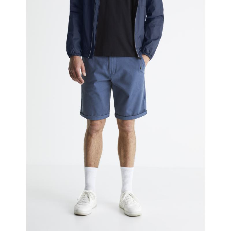 Neformální a přesto elegantní chino kraťasy jsou vyrobené ze strečové bavlny. Pohodlné, ležérní a elegantní. Mají pevný pas, zapínání na zip a knoflík a kapsy. Tyto kraťasy oceníš především v létě.