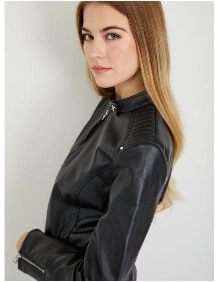 Černá dámská koženková bunda