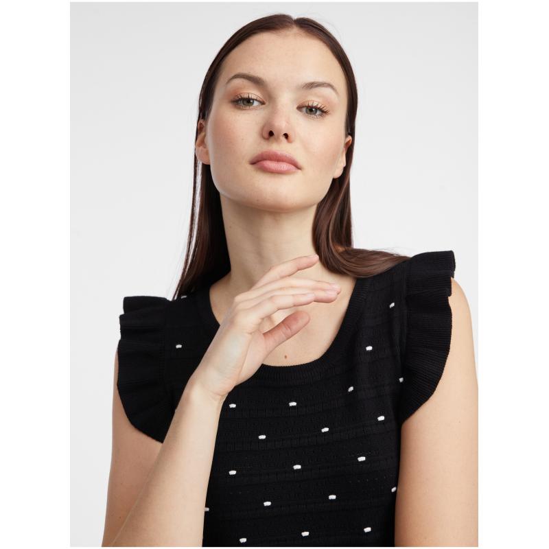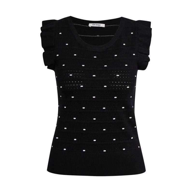 Barva: černáStřih: slim fitDélka rukávu: krátkýVýstřih: kulatýVzor: puntíkovanýMateriál: 52 % viskóza, 20 % polyamid / nylon, 28 % polyesterKód produktu: 507506660000