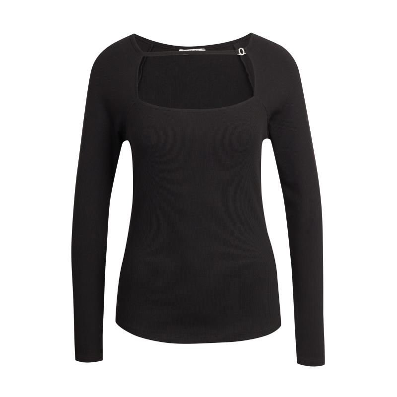 Barva: černáDélka rukávu: dlouhýVýstřih: kulatýMateriál: 58 % polyester, 34 % viskóza, 8 % elastanKód produktu: 1000141660000