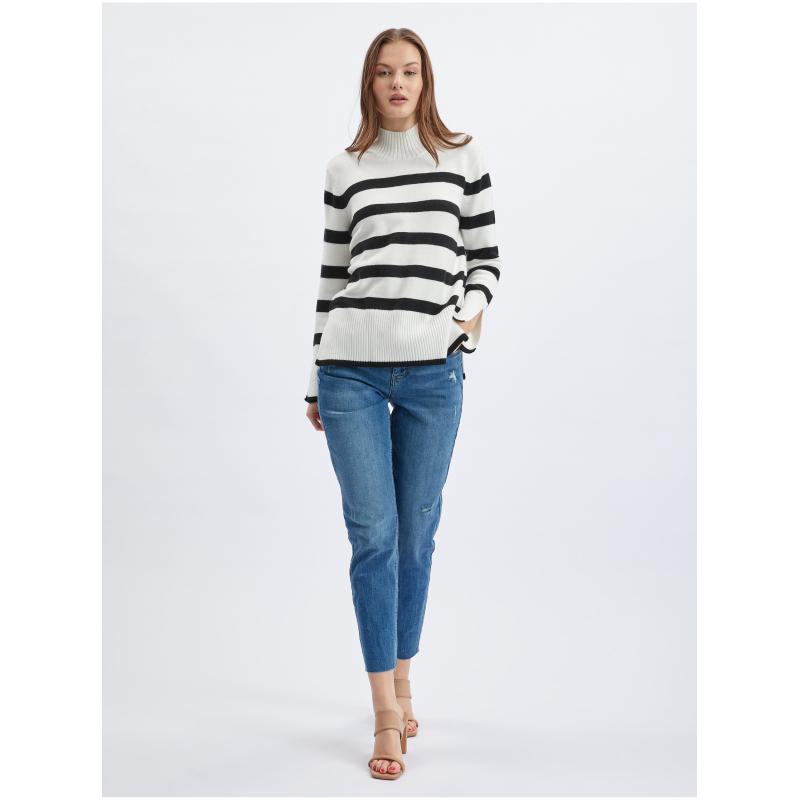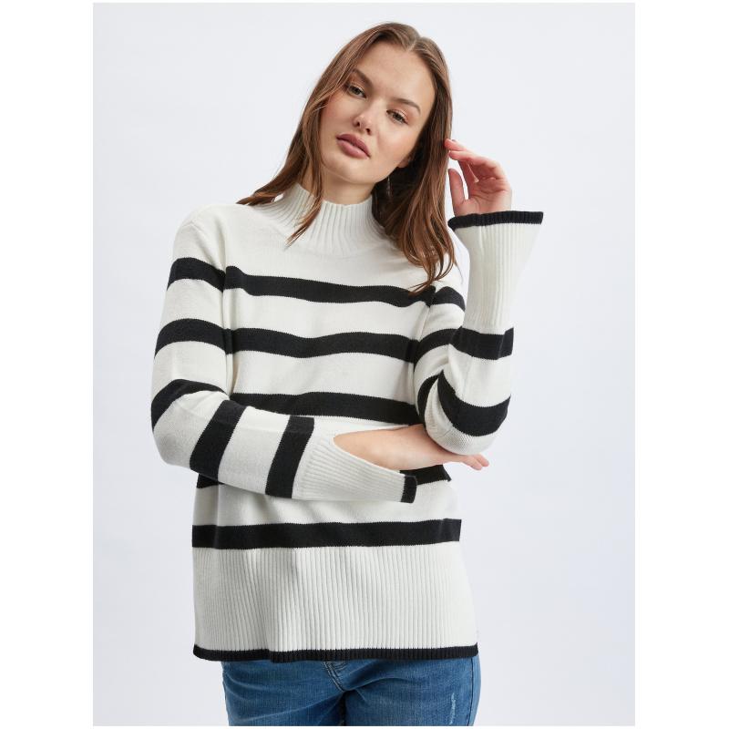 Černo-bílý dámský pruhovaný svetr