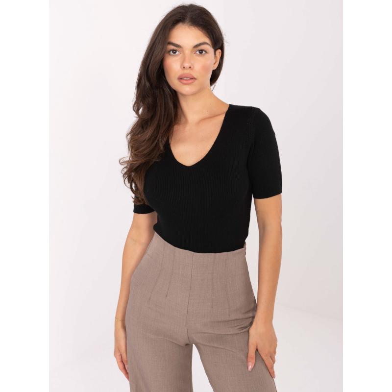 Elegantní černý svetr s výstřihem do V