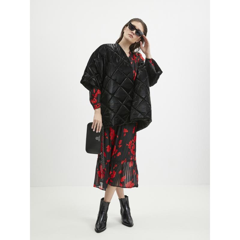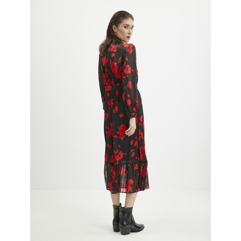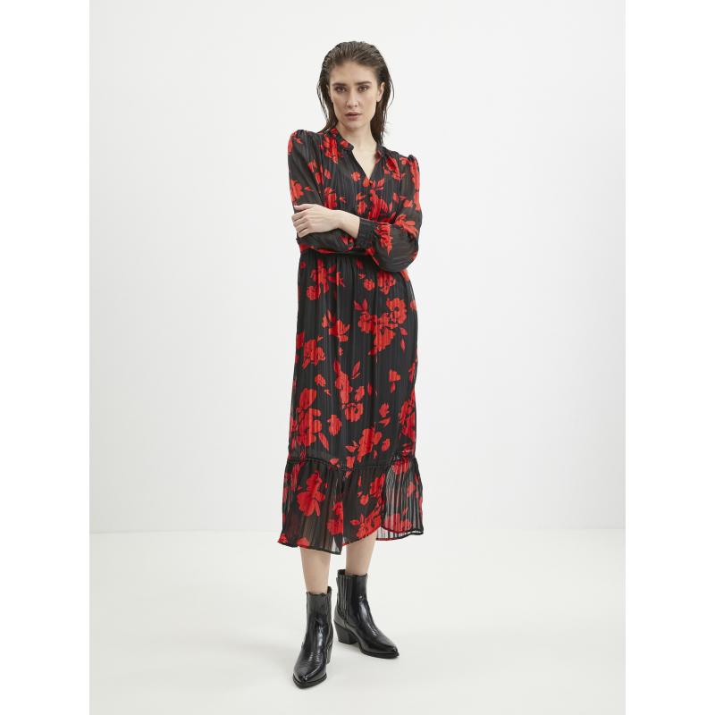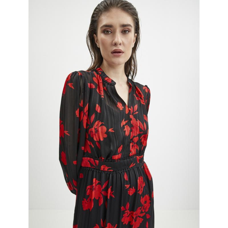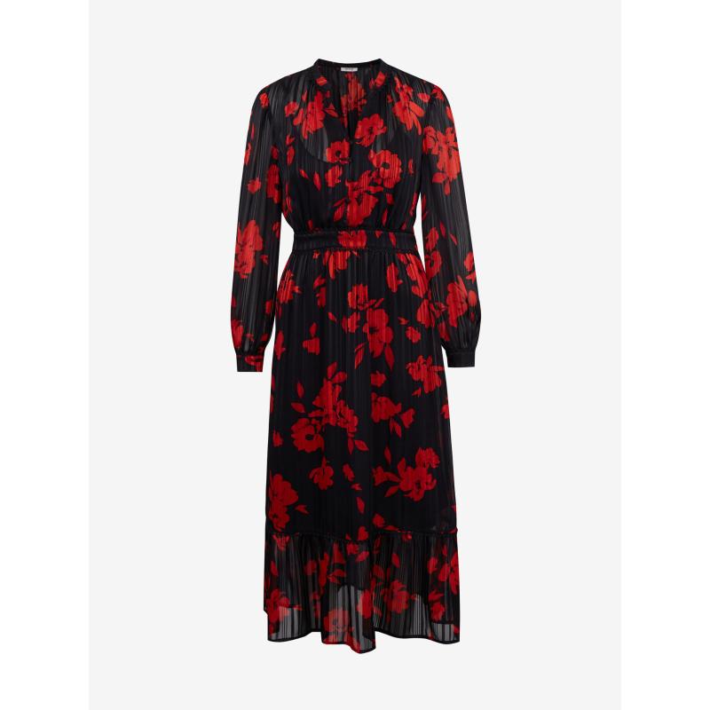 Barva: černáStřih: áčkovýDélka: midiDélka rukávu: dlouhýVýstřih: véčkovýVzor: květinovýMateriál: 100 % polyesterKód produktu: 471690-660000