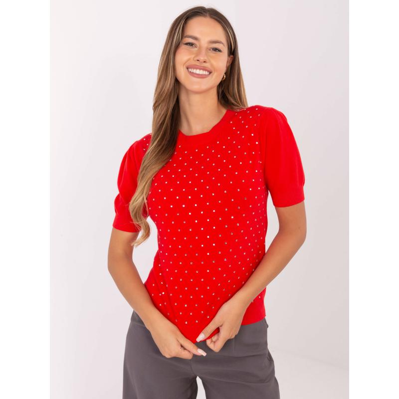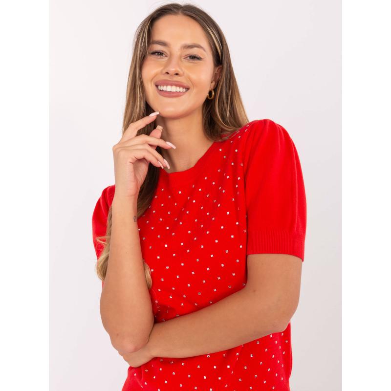 Červený dámský svetr s aplikacemi