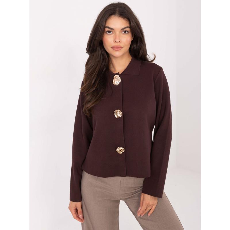 Čokoládově hnědý elegantní svetr se zapínáním na knoflíky