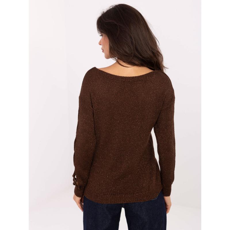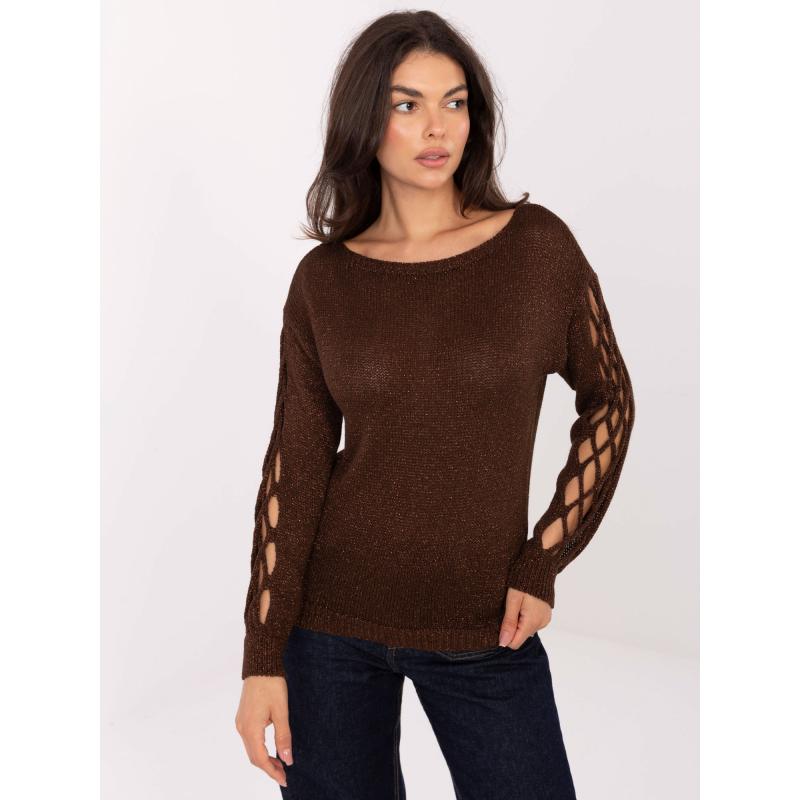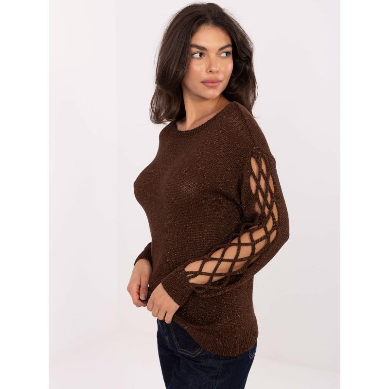 Čokoládový svetr s výřezy na rukávech
