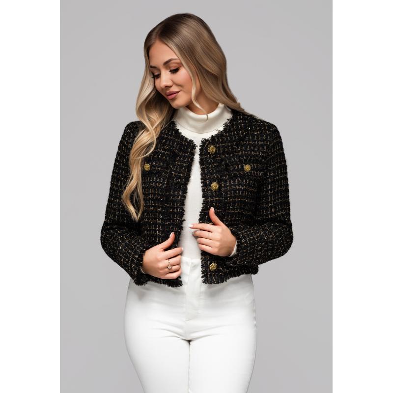 Dámská bunda s vlnou a flitry OW-BLZB-0101 v1 – černá