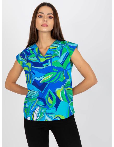 Dámská halenka s plisováním květovaná RUE PARIS modrá