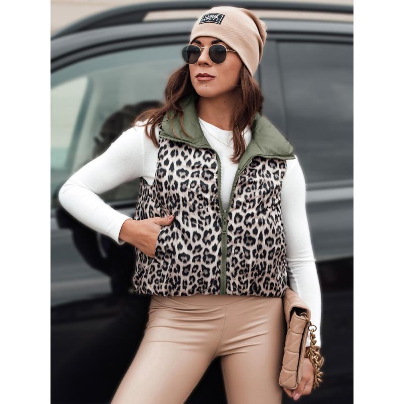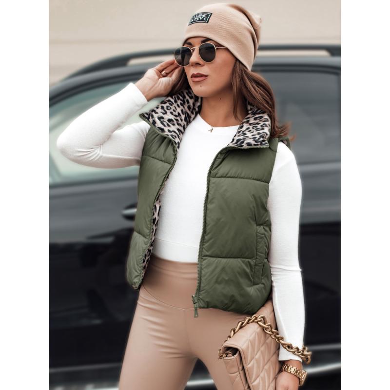 Dámská přechodná krátká prošívaná oboustranná vesta LEOVELLA zelená