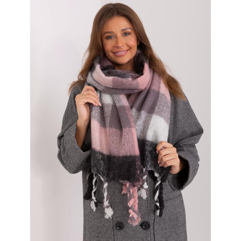 Női sál bojtokkal DIMM rózsaszín-szürke