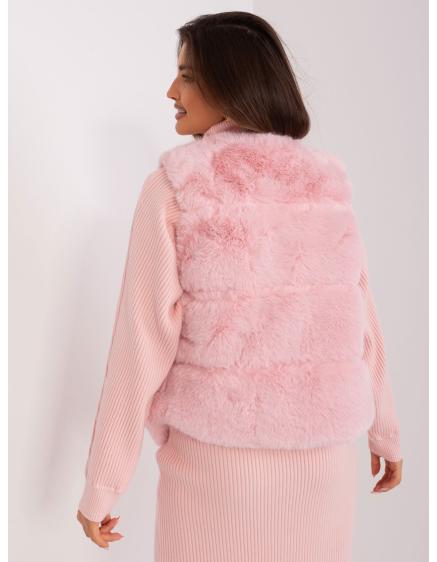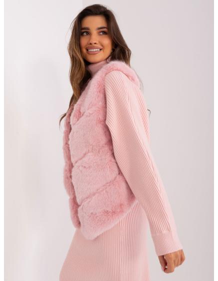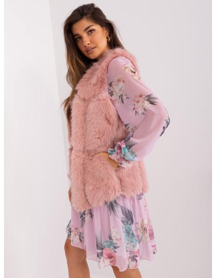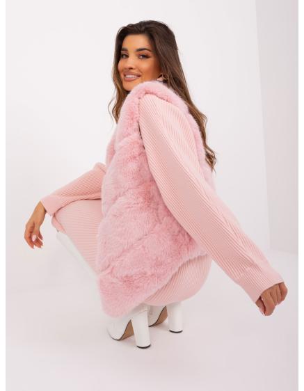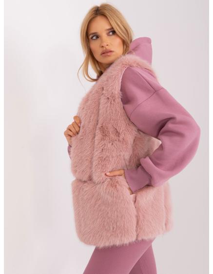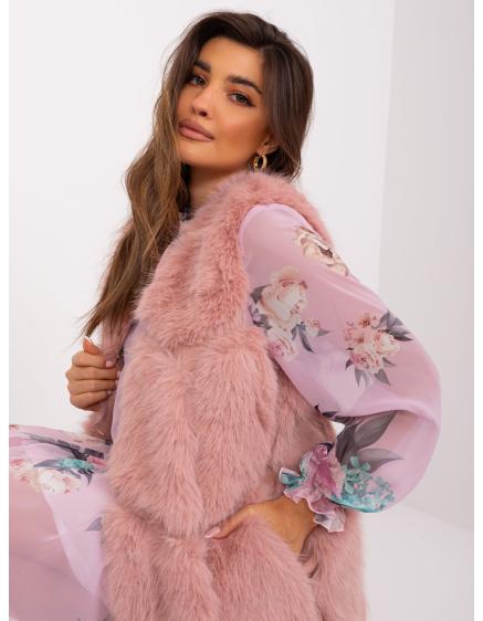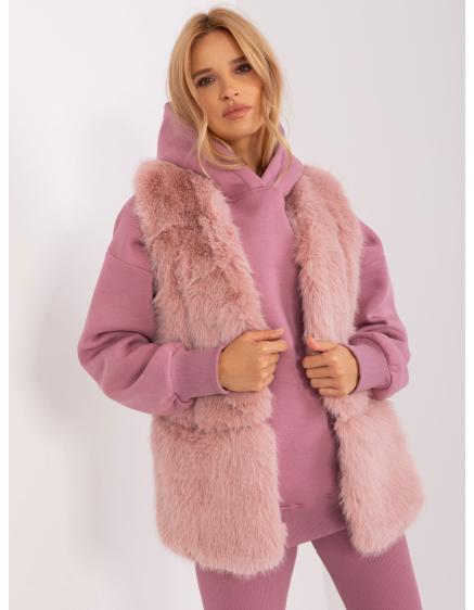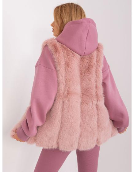 Dámská vesta s kapucí kožešinová lorr světle růžová