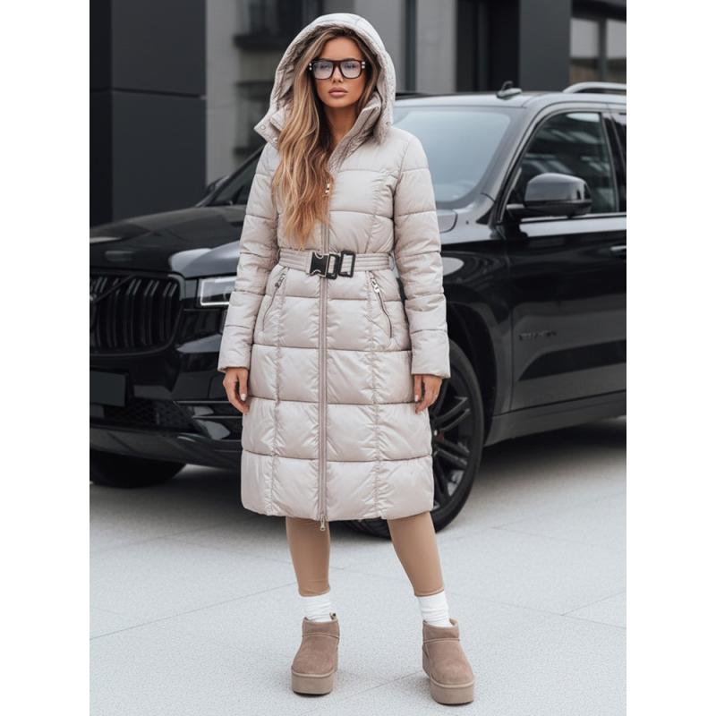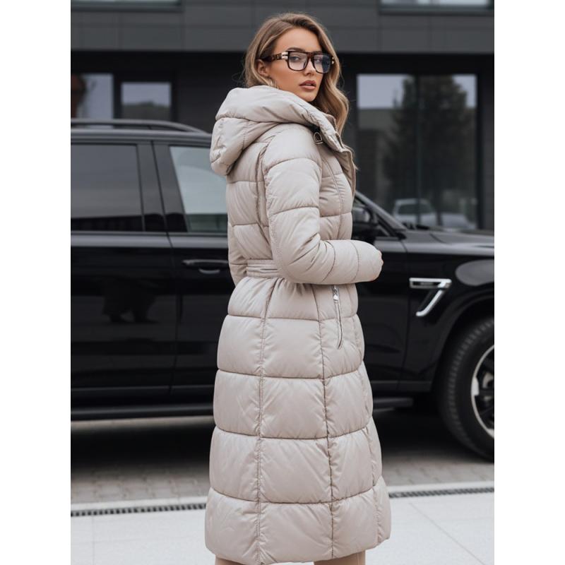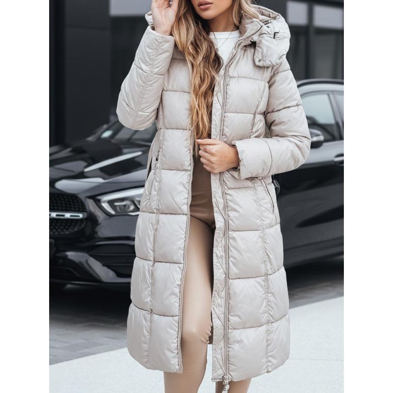 Dámská zimní prošívaná bunda s kapucí, béžová