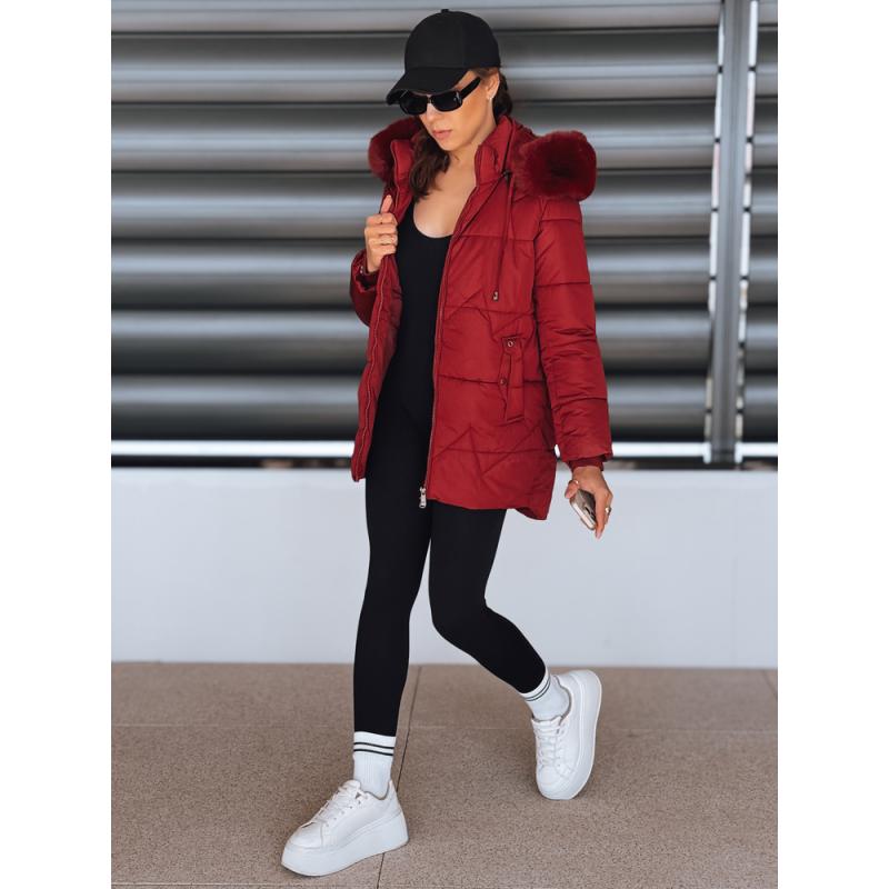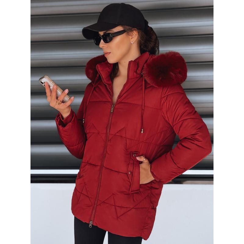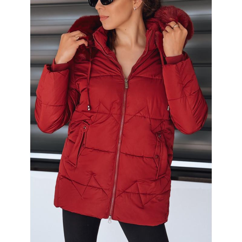 Dámská zimní prošívaná bunda s kapucí, bordó