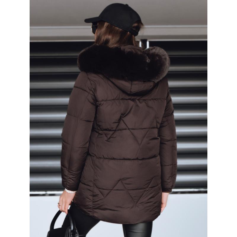 Dámská zimní prošívaná bunda s kapucí, hnědá