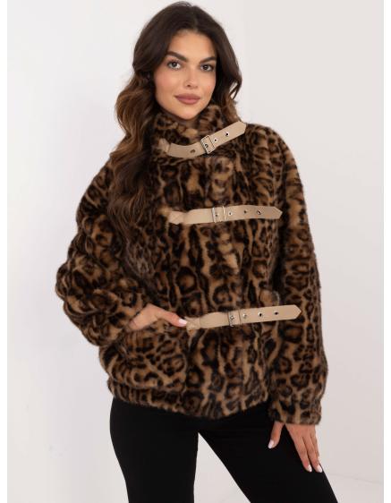 Dámská bunda s kožešinou a leopardím vzorem hnědá