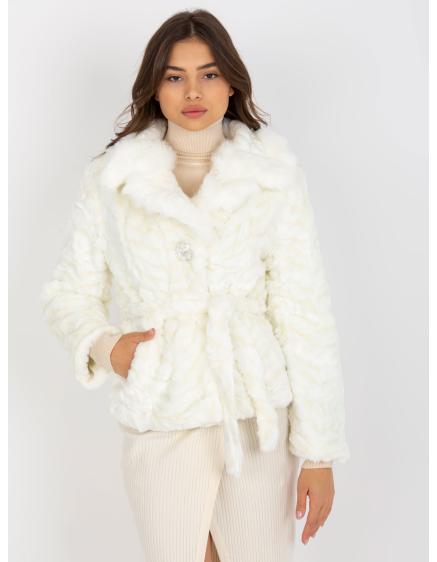 Dámská bunda s páskem kožešinová zimní ALICE bílá