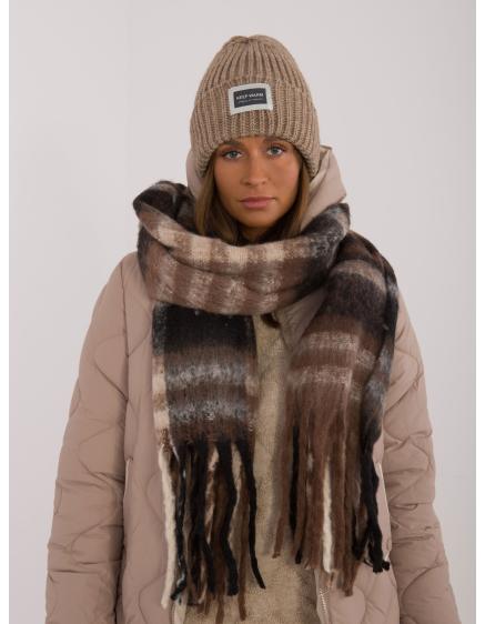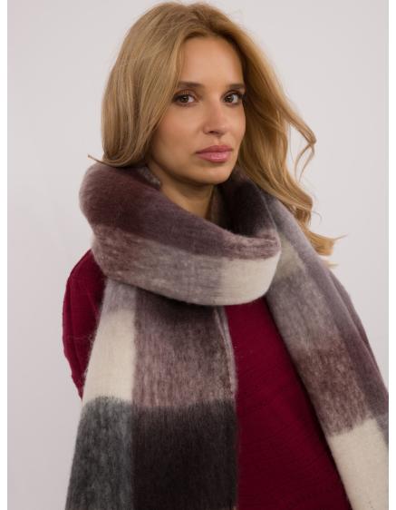 Dámská šála zimní kostkovaná hnědo-tmavě žlutá