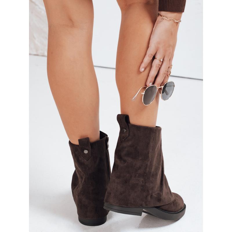 Dámské kotníkové boty ze semiše s ohrnutým svrškem hnědé