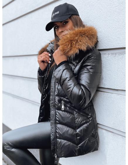 Dámská zimní prošívaná bunda s kožíškem a kapucí LAGOON černá