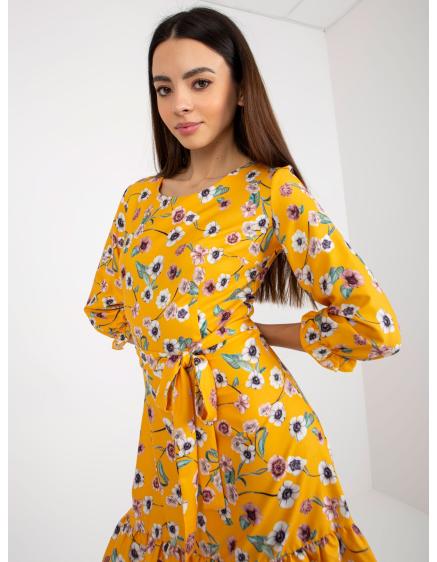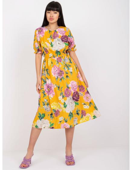 Dámské šaty s květinovým potiskem midi MELANI žluté