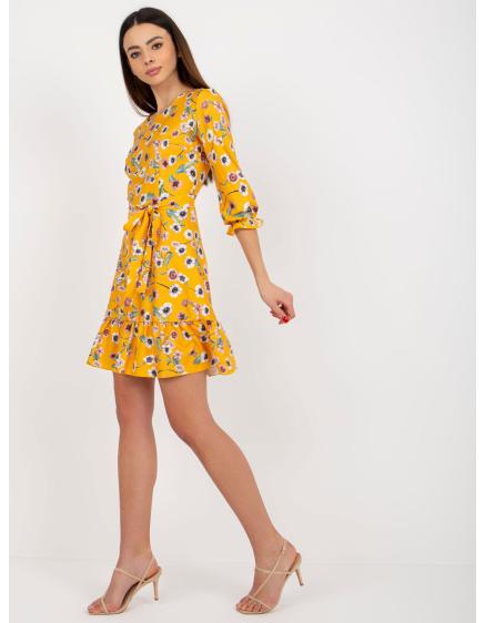 Dámské šaty s vázáním a volánky LIWA tmavě žluté